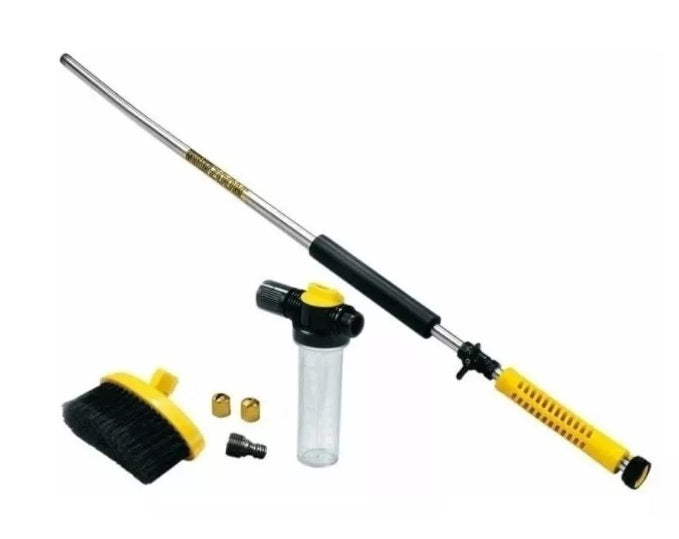 Ideal para quienes tienen jardines, cocheras, techos altos, camiones o transporte pesado, este sistema permite limpiar a profundidad con el mínimo esfuerzo, gracias a su potente presión ajustable y su cepillo con dispensador de jabón integrado.